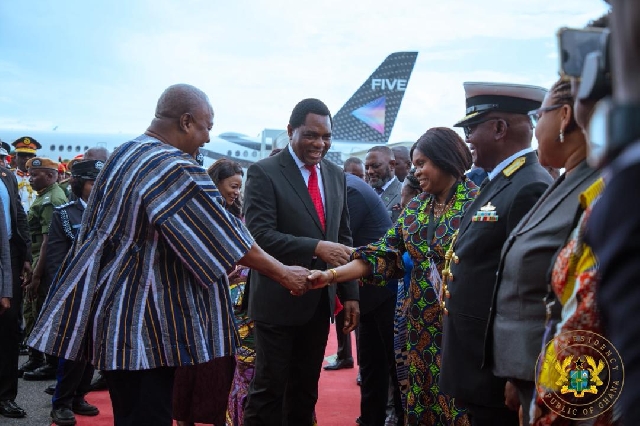 The president, who is accompanied by his wife, the First Lady, Lordina Dramani Mahama, was warmly received on arrival at the Kenneth Kaunda International Airport by President Hichilema. Also present to welcome him was Ghana’s High Commissioner to Zambia, Madam Elizabeth Nyantakyi.