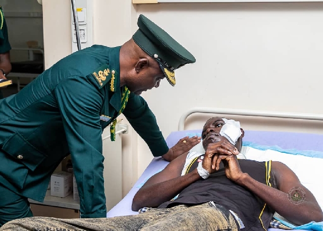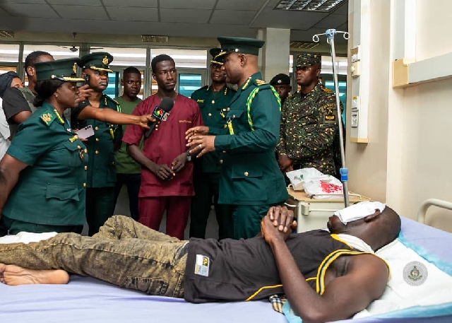 CGI Samuel Basintale Amadu has visited AICO II Daniel Kofi Oppong at the Tamale Teaching Hospital, where he is receiving treatment after surviving a violent attack at the Gbintri checkpoint, North East.