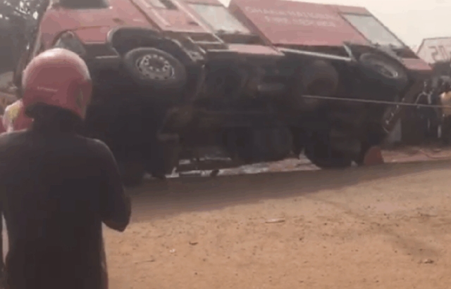 S/R: Fire tender overturns at fire outbreak scene in Buipe
