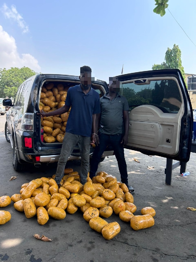 A search conducted on the vehicles led to the discovery of several compressed yellow-wrapped parcels suspected to be narcotic drugs.
